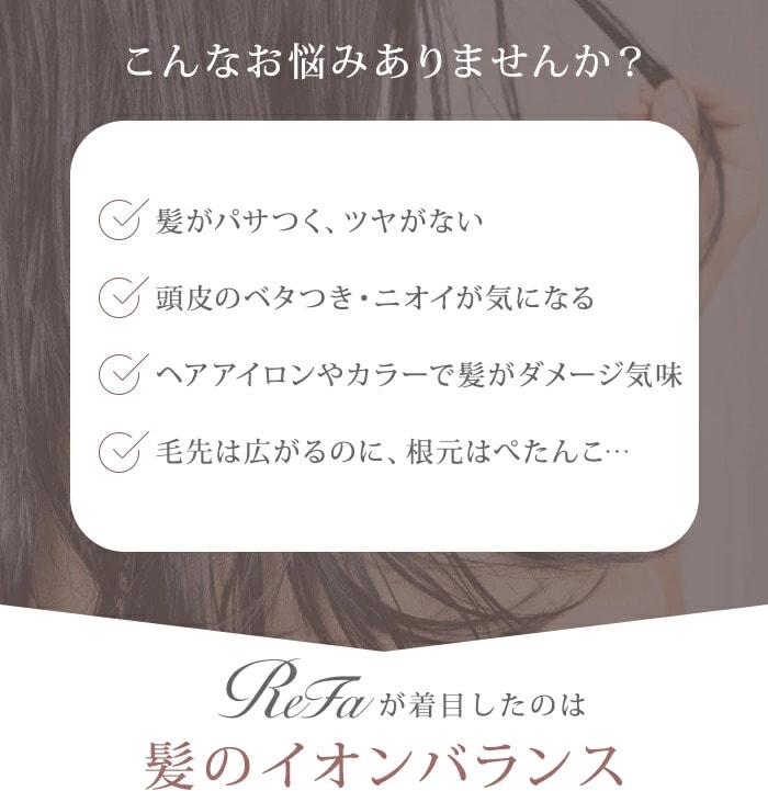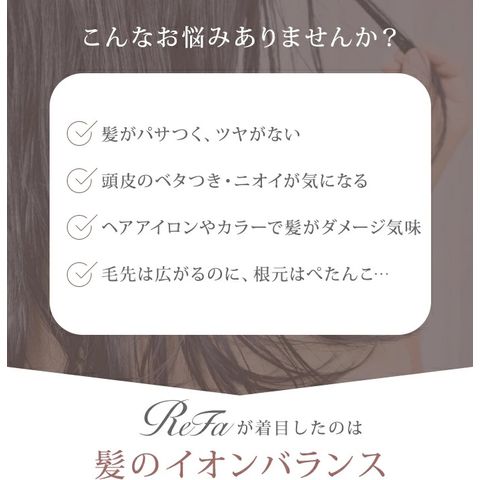 リファ イオンケア シャンプーは、イオンミネラル※1を含む泡で頭皮をすっきりと洗い上げながら、根元からふんわりとした仕上がりへ。