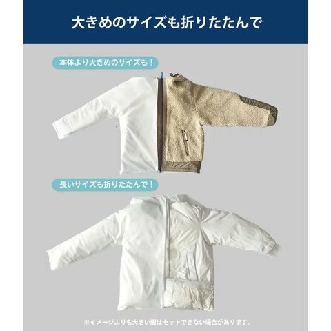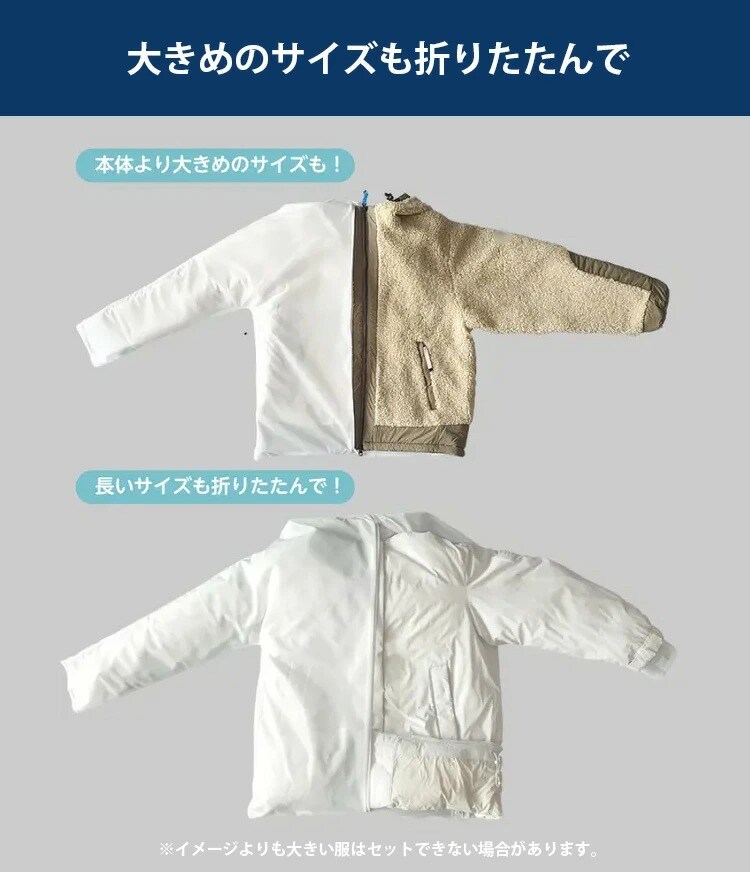 ハーフ・ロング・ダウンジャケットは折り上げても使用が可能です。 ※イメージよりも大きい服はセットできない場合があります。 |