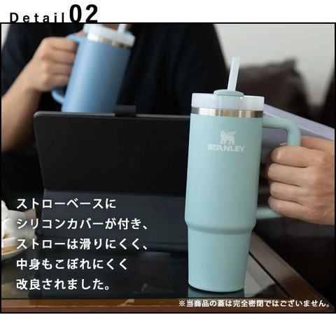 STANLEYで人気の「真空スリムクエンチャー」が、更に使いやすくなって新登場しました。 リサイクルステンレスを使用しているので、環境への優しさと頑丈さ両立させながらも、真空断熱構造により、長時間冷たさをキープします。 持ち手が付いているうえに、外れにくいシリコン製の蓋、さらに飲みやすいストロー部分は、自宅だけでなく、車での移動時や、キャンプなどのアウトドアでも大活躍します。 様々なシーンで使える機能性の高いタンブラーです。 |