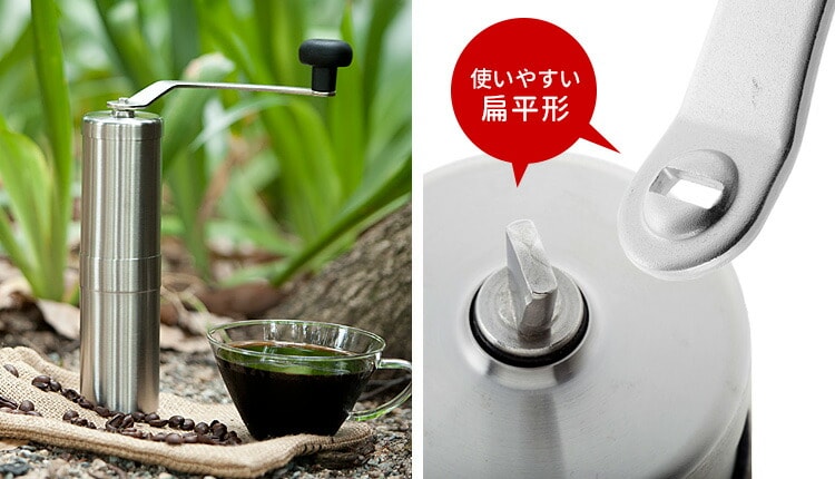 持ち運びにも便利で、アウトドア用として最適。ミニタイプより少し大きめで握りやすく、回しやすいです。 焙煎したコーヒー豆を一度に約30g挽くことができます(コーヒーカップ約3杯分)。 電動コーヒーミルと違って、手挽きタイプのミルはじっくりとコーヒーの香りを楽しみたい方におすすめ。 微調整ができるのも強みです。エスプレッソから粗挽きまでお好みの粒度で豆を挽くことができます。 お誕生日やお祝い、母の日や父の日のギフト、コーヒー好きの方への贈り物にいかがですか? ● セラミックの刃だから風味を損なわず、ずっと使える セラミック刃を使用しているため、金属臭が全く無いのでコーヒーそのものの風味を楽しむことができます。 セラミック刃は摩耗しにくく、また錆びることが無いので安心して末永くお使いいただけます。 ● お好きな粒度に簡単設定! 粒度調節機能が付いているので、エスプレッソ用から粗挽きまで簡単にお好みの粒度で挽いていただけます。 ● 分解掃除・水洗いできて清潔 セラミックの内刃、外刃共取り外しができ、清掃、水洗いができるので、清潔に使用できます。 前回挽いたコーヒーの粉が混ざることなく毎回挽きたての味と香りを楽しむことができます。 ● 鹿児島県霧島市の自社工場で製造 開発から製造まで全てPORLEX社で行っています。 ● 国際特許出願中 |