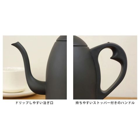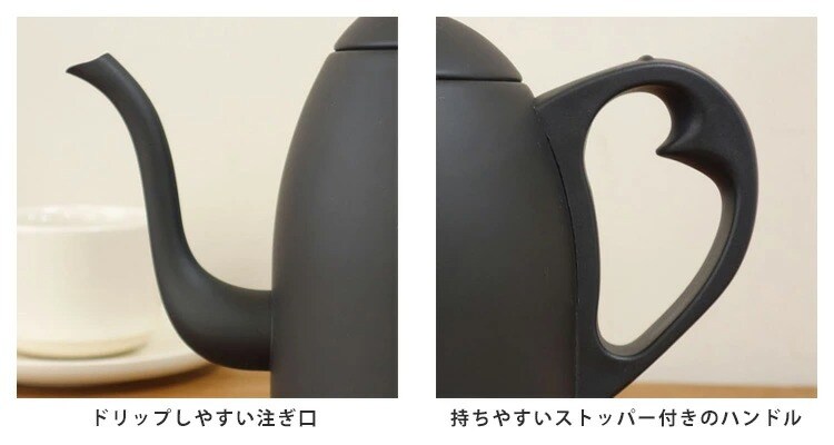 コーヒーポットのような細長い注ぎ口なので、湯量を調節しやすく、コーヒーを淹れる時に便利です。