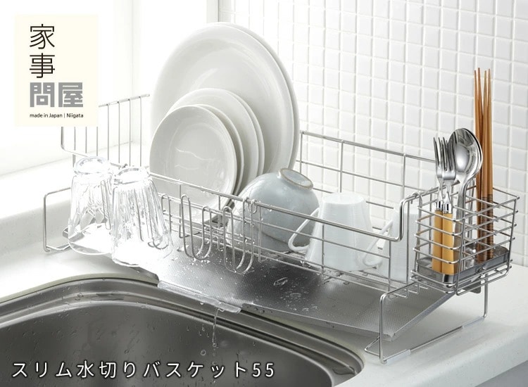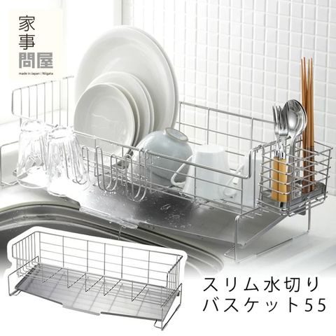 家事問屋 スリム水切りバスケット55 水切りラック 水切り スリム 水切りバスケット 55 ステンレス 水切りかご 洗いかご シンク横 1段 シンクサイド 水が流れる 日本製【送料無料】