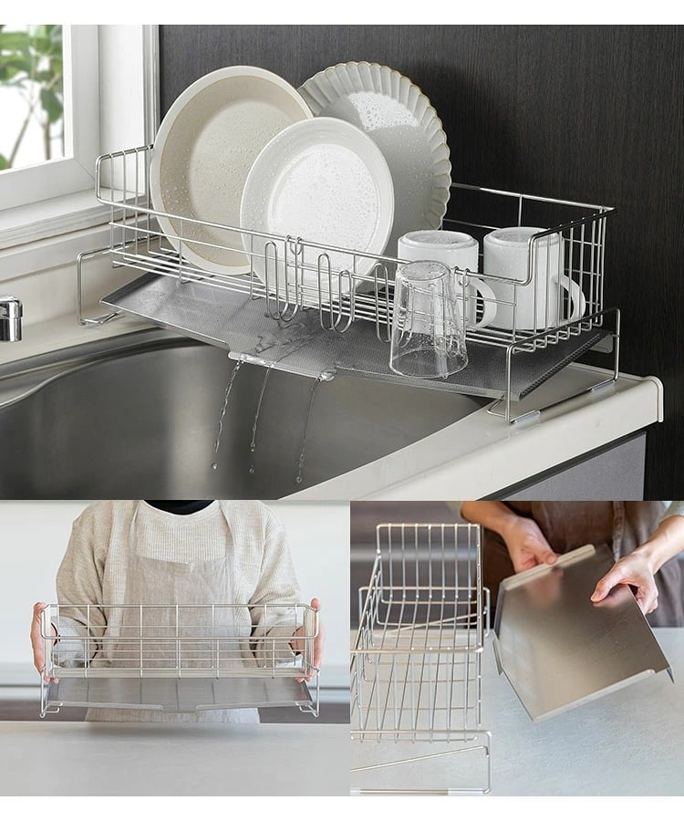 | 調理スペースを邪魔しない、シンクの奥行に合わせた水切り籠 |