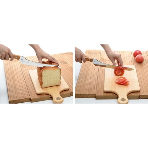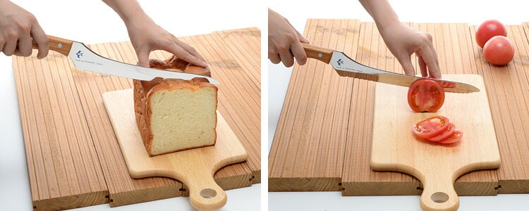 | 硬いパンも柔らかいパンもキレイにカットするパン切り包丁 波刃と直刃を組み合わせたナイフ。パン以外にもフルーツやお肉もスパッと切れます |