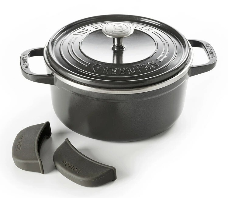 GREENPAN フェザーウェイト・ココット ラウンド22cm【グレー】(ポットホルダー2個付き グリーンパン 人気 安全 コーティング 両手鍋)【送料無料】