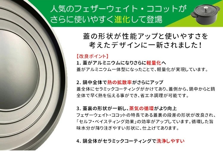 ■検索ワード:プチギフト おもたせ 贈答品 返礼品 お返し サプライズ 記念日 誕プレ 誕生日プレゼント クリスマスプレゼント お中元 お歳暮 暑中見舞い 残暑見舞い 寒中見舞い 余寒見舞い 進級祝い 進学祝い 入学祝い 卒業祝い 成人祝い 成人式 入籍祝い 新築祝い 内祝い 引き出物 引っ越し祝い 引越し祝い 引越祝い 転居祝い 入社祝い 就職祝い 転職祝い 昇進祝い 就任祝い 退職祝い 送別 開店祝い 開業祝い 開院祝い 移転祝い 出店祝い 新店祝い 周年祝い オープン祝い 大学生 社会人 敬老の日 定年祝い 還暦祝い 友人 友達 友だち 彼女 妻 母親 彼氏 夫 父親 10代 20代 30代 40代 50代 60代 70代 フェザー ウェイト フェザーウエイト Cocotte 両手鍋 おしゃれ オシャレ 写真映え インスタ映え 人気 朝日新聞 毎日新聞 掲載 エシカル 地球にやさしいヘルシークッキング 安全