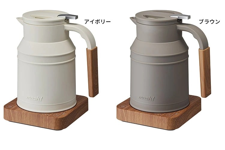 | かわいいのに優秀!温度設定&保温ができる電気ケトル どこかレトロで牧場で使われるミルクタンクを連想させるデザイン。マットカラー×木目柄が食卓をやさしく和ませます。 |