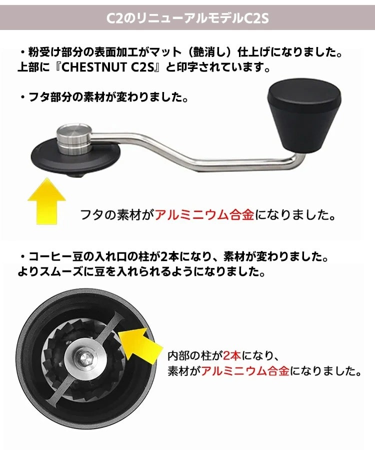 | コーヒーグラインダーC2のリニューアルモデルC2S |