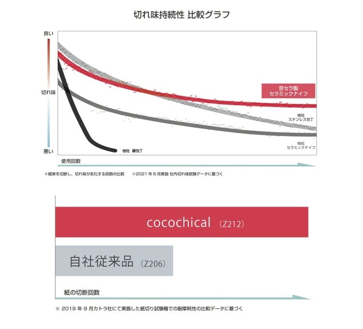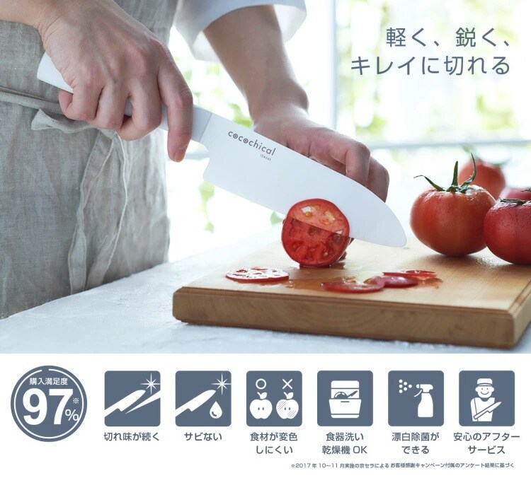 | 切れ味が長持ちする新セラミック素材を採用したcocochicalナイフ |