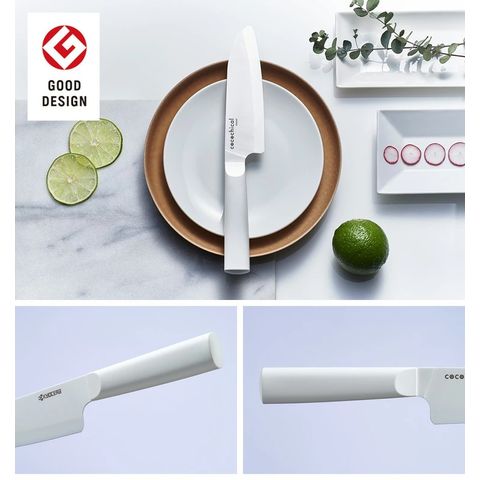 洗練されたデザインと高い機能性を備えた、新しいセラミックナイフ「cocochical(ココチカル)」。 セラミックナイフのパイオニアである京セラが、10年以上の研究を経て開発し、特許を取得した新素材の刃を採用することで、従来品と比べて切れ味を2倍以上※持続させることに成功しました。 ※2019年9月に英国・カトラ社(国際的なナイフ等の研究技術組織)にて刃物耐摩耗性試験を実施。 また、ナイフのデザインにもこだわり、ユーザーそれぞれの持ち方や利き手に応じた握り替えが、自然かつ自由にできるシームレスなハンドル形状としました。 さらに本製品はこれらのことが評価され、『2020年度グッドデザイン賞』を受賞しています。 |