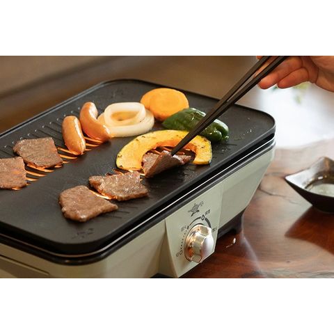 イヤな煙や脂のにおいを発生から抑える構造で、さらに余分な脂もカットします。 食材から出た脂がプレートの上で熱されることなく水トレイへと落ちるので、イヤなにおいや煙が発生しにくい仕組みになっています。 「弱火/減煙/強火」の3つの火力切り替え付き。「減煙モード」は煙が気になる時におすすめです。 |