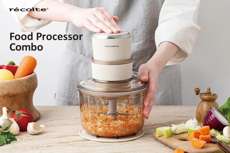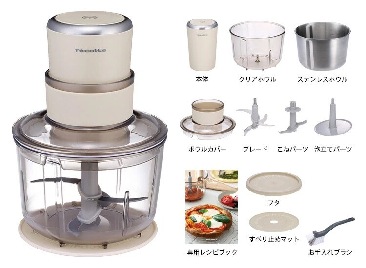 recolte フードプロセッサー コンボ (3種類のアタッチメント・2種類のボウル付き レコルト RCP-6 ミキサー ブレンダー 大容量 氷も砕ける 離乳食 コンパクト ミンチ パン生地 こね作業 ジューサー レコルテ)【送料無料】