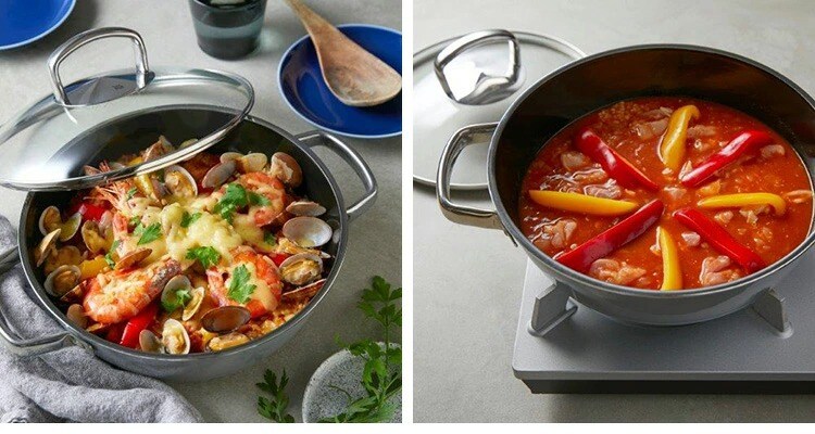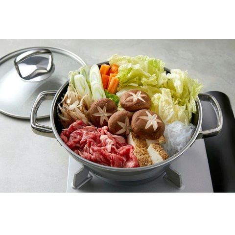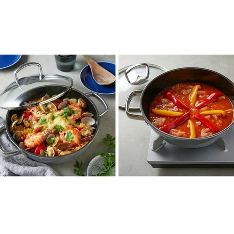 魚や肉を焼いてから蒸したり、煮込み料理、炊き込みご飯など、フライパンと鍋の両方の用途で便利に活躍。 すき焼きなどの卓上鍋料理や、パエリアなどのオーブン料理にも幅広くマルチに使えます。 スタイリッシュなデザインで、いつもの食卓がより華やかに。 |