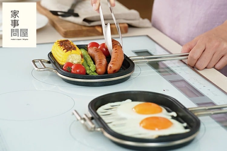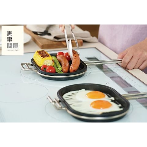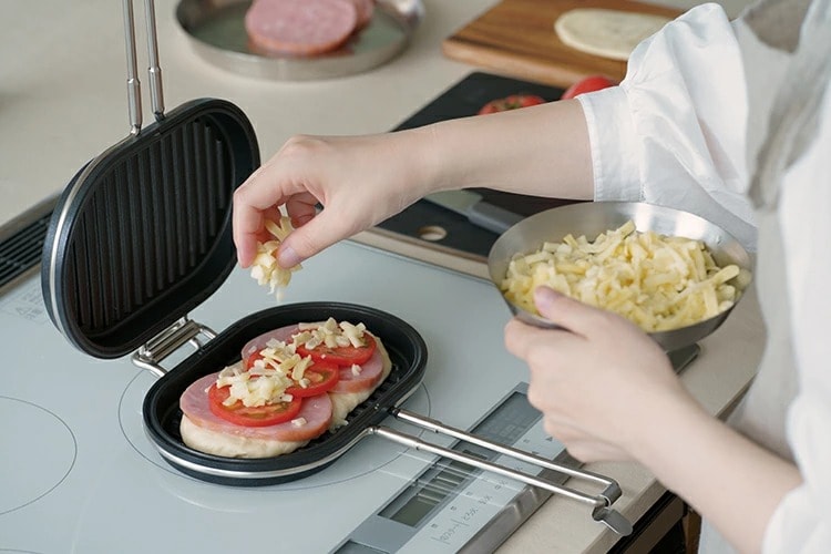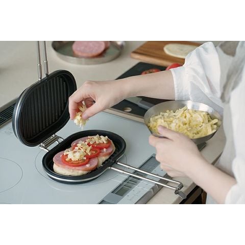 パニーニパンは、好きな食材を挟むだけで、カリカリあつあつのホットサンドが作れます。 仕切りがないフラットで広い焼き面だから、様々な大きさのパンに対応。 パン以外にも茄子やアスパラガスなどの野菜をまるごと焼いたり、ステーキや焼き魚などの調理にも使えます。 底面が波型だから、肉や魚に火が通りやすく、焦げつきも防ぎます。また、挟んで焼けるので煙やにおいが出にくいのも嬉しいところ。 自宅だけでなく、アウトドアでも大活躍すること間違いなしです。 ジャパン・ツバメ・インダストリアルデザインコンクール2023にて「審査員特別賞」を受賞しました! |