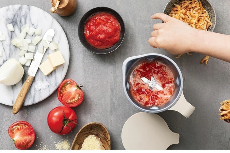 | 材料を入れたらほったらかしで完成!スリムなポット型の自動調理器 便利な5つの調理モード搭載!火を使わず、食材の刻み・撹拌・加熱・保温できるので安心 |