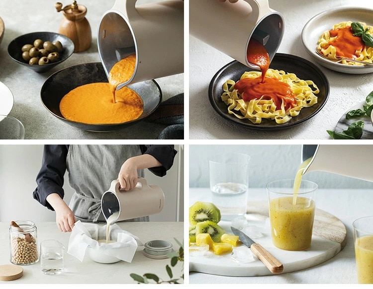 “ほったらかし”でお料理完成!スリムなポット型の自動調理器です。 材料の刻み具合や加熱温度を、5種類の調理モードごとにコントロールしながら撹拌。 手作り豆乳&おからのほか、面倒な裏ごしいらずでなめらかなポタージュスープやペースト(パスタソース)、具材の食感を残したミネストローネなどの食べ応えのあるスープ・おかゆなどが、具材を入れてボタンを押すだけで手間なく簡単に作れます。 家庭用の氷も砕けるので、スムージーなどの冷たいメニューもOK! 加熱をしないで攪拌だけを行う「JUICE/CLEAN」モードや、保温ができる「WARM」モードも搭載。 火を使わないから安心して放ったらかしできます。 |