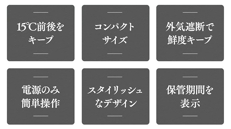 本当に美味しいお米をどうしても味わっていただきたい! そんな想いから開発に至ったのが“お米専用の冷蔵庫”です。 ライスフリッジは、お米の美味しさをキープするために適切な温度である「15℃前後」を保ち続けることができる冷蔵米びつです。 独自の技術でこれまでにないサイズ感と、インテリアに溶け込むスタイリッシュな見た目を実現。 ワンタッチでできる簡単操作で、いつでも新鮮でおいしいお米を食べることができます。 |