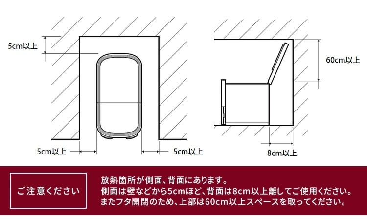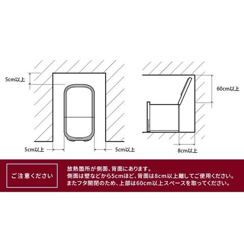 | 放熱箇所 | 背面・側面 ※側面は壁等から5cm程、背面は8cm以上離してご使用ください |