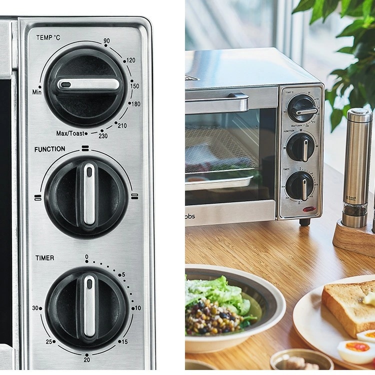 約90?230℃の間で無段階調節できるので、冷めたものの温め直しや、しっかり熱々に焼くまでと、料理のレパートリーを広げてくれます。