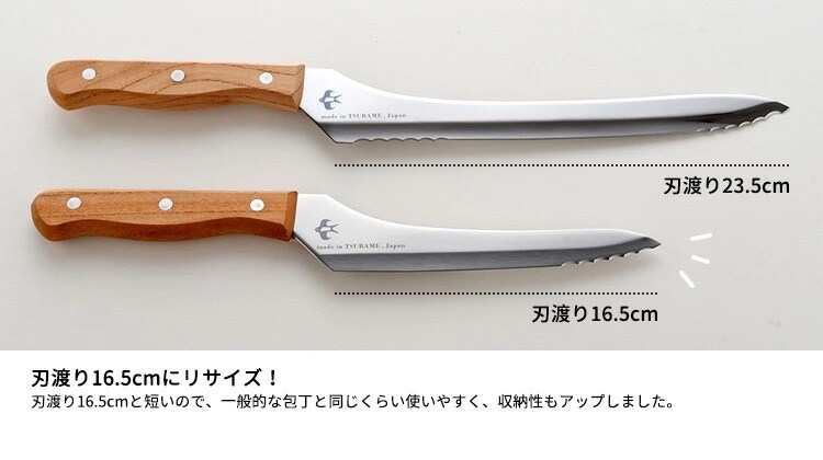 | 人気の「つばめのパンナイフ」に、新たに短めサイズが登場! |