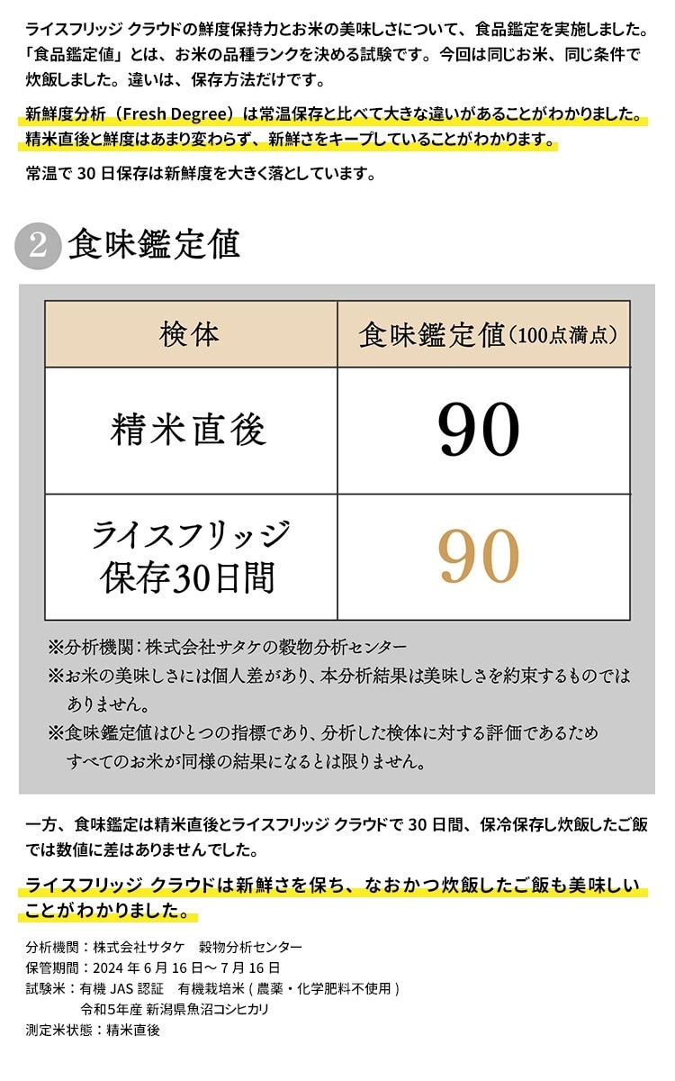 日本人の主食「お米」を更においしく。精米後のお米の保存方法をアップデート! 毎日食べるお米なのに、置く場所、保管方法はアップデートはされぬまま、長い間、各家庭で様々な方法で保管されてきました。炊飯器や土鍋などお米を炊く機器や技術は進化しているのに、お米の保存方法については100年前と変わっていません。 地球の気候変動で夏の高温、多湿、冬の乾燥はお米にとっても過酷な環境になっています。 自動感知センサーを搭載した「ライスフリッジ クラウド」はお米の保存に適した環境を自動で制御します。 精米したての新鮮な美味しさを逃さず密封保存し、適温15度で保存。 冷蔵庫内の温度も自動感知センサーが調整します。 最新のお米の保存はお米専用冷蔵庫「ライスフリッジ クラウド」にお任せ! 1家に1台、お米専用冷蔵庫を置く時代の到来です。 |