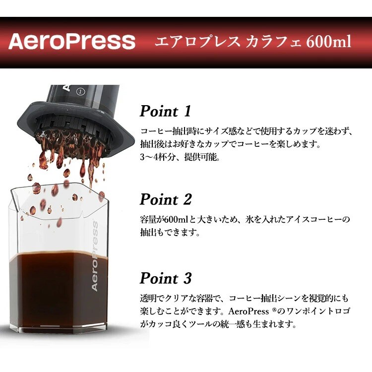 AEROPRESS エアロプレス カラフェ 600ml (3~4人対応 コーヒーサーバー エアロプレス専用 注ぎ口付 倒れにくい コーヒーを淹れる 耐熱 アイスコーヒー対応 容量が大きい)【送料無料】