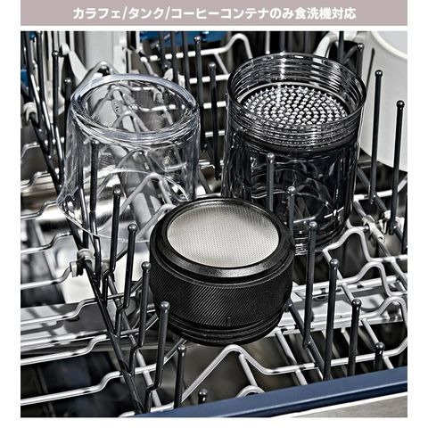 ※ポンプ部分は水につけないでください。 ※カラフェ/タンク/コーヒーコンテナのみ食洗機がご使用いただけます。 ※漂白剤はご使用いただけません。 ※商品の色はモニターの具合で実物と若干異なる場合がございます。予めご了承下さい。 ※デザイン、仕様等につきましては、予告なく変更する場合がございます。予めご了承下さい。 ※複数店舗を運営しておりますため、ご注文の入れ違い等で欠品などになってしまう場合がございます。万が一、発送が遅れる場合は、ご注文受付当日中にご案内差し上げます。誠に恐れ入りますがご了承くださいますよう、お願い申し上げます。 ※ご予約・お取り寄せ商品は、ご注文受付後にお客様ご注文分としてメーカーへ発注を致します為、基本的にキャンセルやご返品はお受けできません。 | |