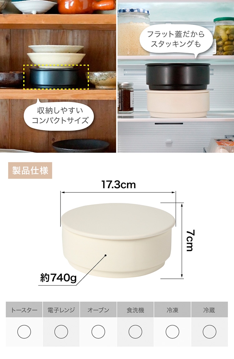 | 使用可○ | トースター、電子レンジ、オーブン、冷凍、冷蔵、食洗機 |