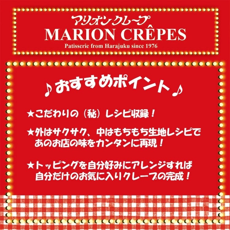 ★こだわりの(秘)レシピも収録! ★外はサクサク、中はもちもち生地レシピで、あのお店の味を再現! ★トッピングを自分好みにアレンジすれば自分だけのお気に入りクレープの完成! |