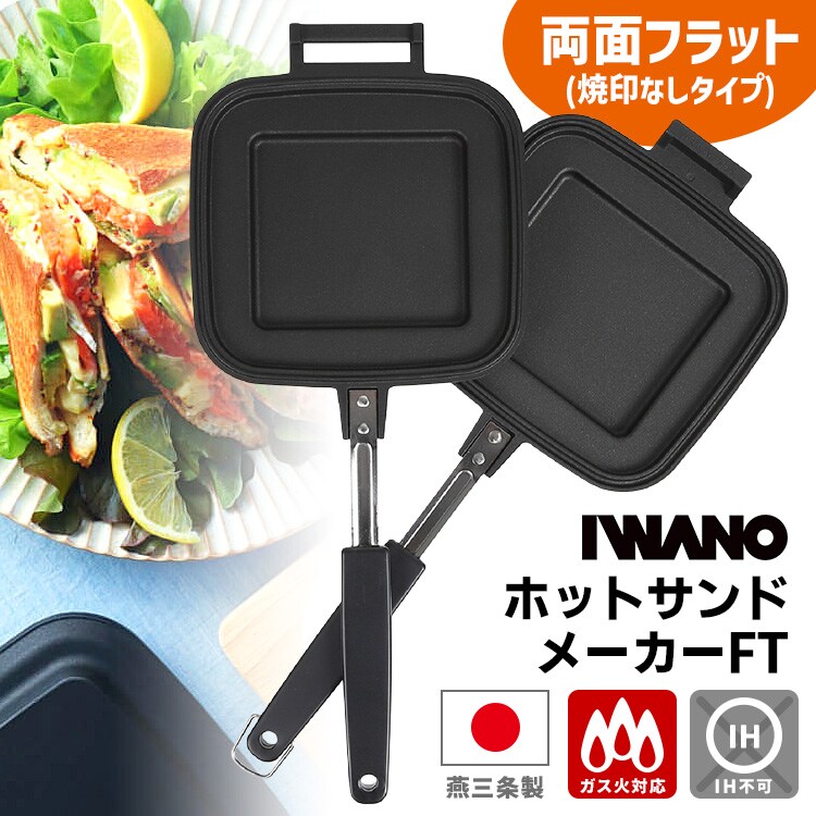 IWANO ホットサンドメーカーFT 【ブラック】 (ガス火用 取り外し可 ミニフライパン 内側フラット 焼印なし アルミ製 軽量 耳まで焼ける 燕三条 日本製 朝食 ランチ 軽食 イワノ いわの)【送料無料】