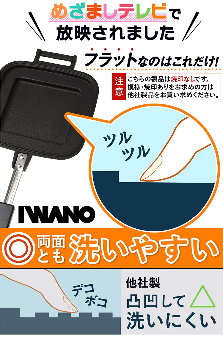■検索ワード:4589550430582/フジテレビ/めざましテレビ/TVで紹介/テレビで紹介/IWANO/イワノ/いわの/ホットサンドメーカー/ホットサンドベーカー/プレスサンドベーカー/サンドプレスメーカー/HOTSAND MAKER/フライパン/内側フラット/模様なし/焼印なし/無地/アルミ製/取り外し可/取り外しOK/取り外せる/片面使用/汚れがつきにくい/耳までカリッと焼き上げ/耳まで焼ける/ホットサンド/サンドイッチ/トースト/軽量/軽い/コンパクト/かんたん/便利/美味しい/手頃/小食/朝食/ランチ/軽食/日本製/燕三条製/おしゃれ/お洒落/オシャレ/スタイリッシュ/デザイン/シンプル/おすすめ/オススメ/人気/話題/流行り/注目/口コミ/クチコミ/大反響/大好評/大人気/大評判/アウトドア/レジャー/キャンプ/アウトドア料理/アウトドア調理/キャンプ飯/野外調理/新生活/一人暮らし/ひとり暮らし/自炊/弁当/お家カフェ/家カフェ/おうちカフェ/おうち時間/丁寧な暮らし/おうちごはん/簡単ごはん/美味しい/日本製/国内生産/made in japan/メイドインジャパン/正規販売店/正規販売品/正規店/正規品/プレゼント/ギフト/贈り物/お祝い/誕生日/バースデー/クリスマス/バレンタインデー/ホワイトデー/新生活/結婚祝い/母の日/父の日 /プチギフト/おもたせ/贈答品/返礼品/お返し/サプライズ/記念日/誕プレ/誕生日プレゼント/クリスマスプレゼント/お中元/お歳暮/暑中見舞い/残暑見舞い/寒中見舞い/余寒見舞い/進級祝い/進学祝い/入学祝い/卒業祝い/成人祝い/成人式/入籍祝い/新築祝い/内祝い/引き出物/引っ越し祝い/引越し祝い/引越祝い/転居祝い/入社祝い/就職祝い/転職祝い/昇進祝い/就任祝い/退職祝い/送別/開店祝い/開業祝い/開院祝い/移転祝い/出店祝い/新店祝い/周年祝い/オープン祝い/大学生/社会人/敬老の日/定年祝い/還暦祝い/友人/友達/友だち/彼女/妻/母親/彼氏/夫/父親/10代/20代/30代/40代/50代/60代/70代