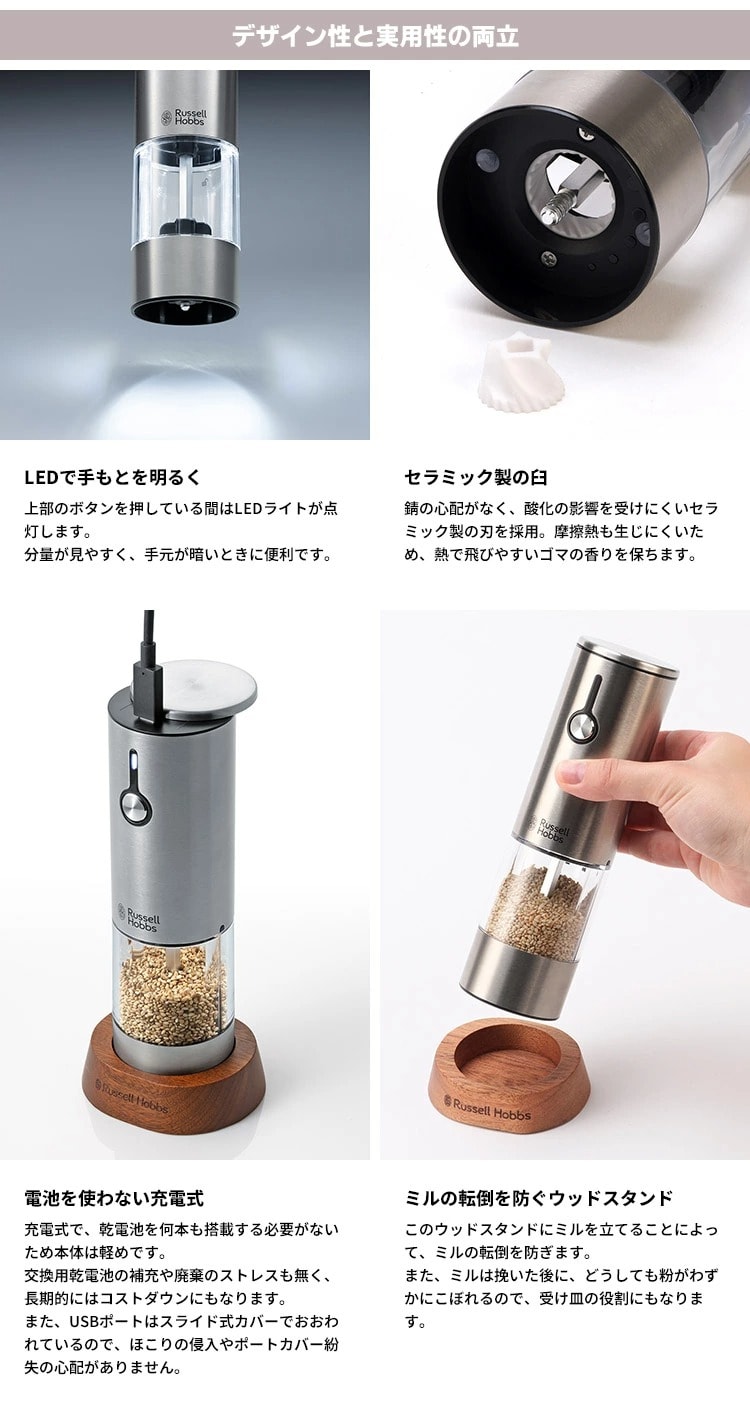 ■検索ワード:4560132470912/RussellHobbs/ラッセル ホブス/新商品/新モデル/ごまミル/ゴマミル/胡麻ミル/セサミミル/胡椒挽き/電動ミル/キッチンミル/スパイスミル/Rechargeable Sesame Mill/充電式/USB充電/コードレス/木製スタンド/ウッドスタンド/簡単操作/片手/ワンタッチ/ステンレス/シルバー/銀色/silver/SESAME MILL/煎りごま/ごますり/ゴマすり/ごま摩り/ゴマ摩り/胡麻摩り/調味料入れ/調味料ケース/調味料容器/おしゃれ/お洒落/オシャレ/スタイリッシュ/デザイン/シンプル/スマート/エレガント/おすすめ/オススメ/人気/話題/流行り/注目/口コミ/クチコミ/大反響/大好評/大人気/大評判/インスタ映え/写真映え/SNS映え/インスタグラム/Instagram/新生活/一人暮らし/ひとり暮らし/自炊/丁寧な暮らし/正規販売店/正規販売品/正規店/正規品/プレゼント/ギフト/贈り物/お祝い/誕生日/バースデー/クリスマス/バレンタインデー/ホワイトデー/新生活/結婚祝い/母の日/父の日 /プチギフト/おもたせ/贈答品/返礼品/お返し/サプライズ/記念日/誕プレ/誕生日プレゼント/クリスマスプレゼント/お中元/お歳暮/暑中見舞い/残暑見舞い/寒中見舞い/余寒見舞い/進級祝い/進学祝い/入学祝い/卒業祝い/成人祝い/成人式/入籍祝い/新築祝い/内祝い/引き出物/引っ越し祝い/引越し祝い/引越祝い/転居祝い/入社祝い/就職祝い/転職祝い/昇進祝い/就任祝い/退職祝い/送別/開店祝い/開業祝い/開院祝い/移転祝い/出店祝い/新店祝い/周年祝い/オープン祝い/大学生/社会人/敬老の日/定年祝い/還暦祝い/友人/友達/友だち/彼女/妻/母親/彼氏/夫/父親/10代/20代/30代/40代/50代/60代/70代