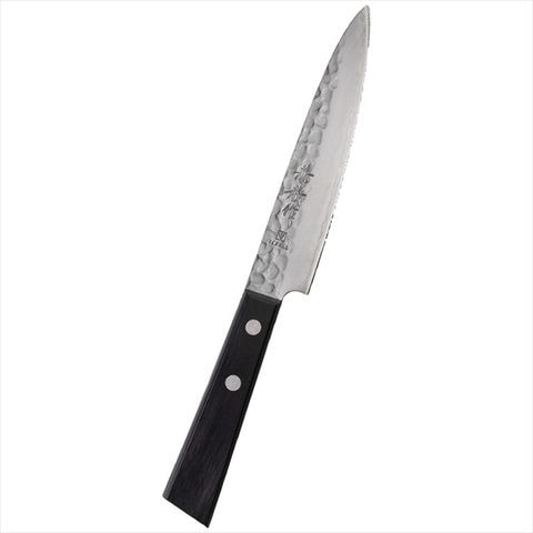 ■商品紹介:高級刃物鋼VG10をステンレスで挟み込んだ3層鋼ブレードで鋭い切れ味が持続する包丁です。ブレードの鎚目により切り離れも良く、コストパフォーマンスに優れた本格的な包丁です。