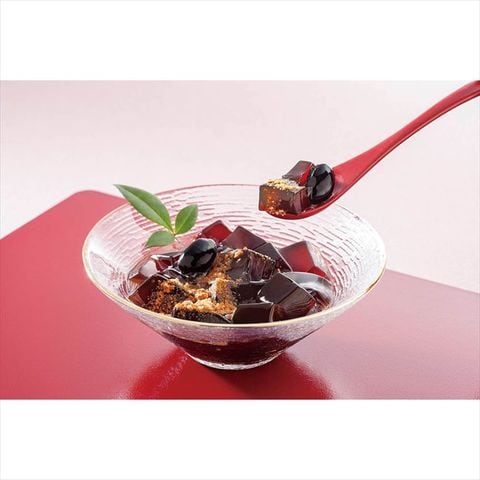 ◆商品紹介:北海道産黒豆と黒蜜を使ったわらび餅。一人前にちょうど良いサイズで、つるんとした食感が特徴です。きな粉をかけてお召し上がりください。