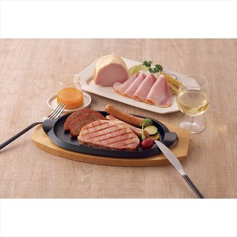 ◆商品内容:ロースハム250g、ハム用ドレッシング120ml、サーロインハムステーキ120g、玉ねぎソーセージ120g、ポークソーセージ120g