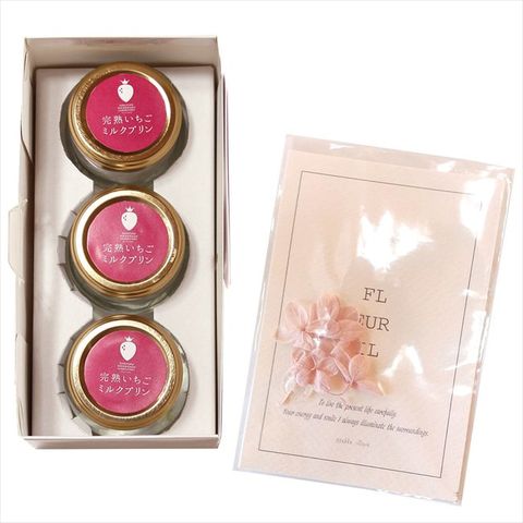 ◆商品内容:完熟いちごミルクプリン3個(約80g/個)、グリーティングカードA5