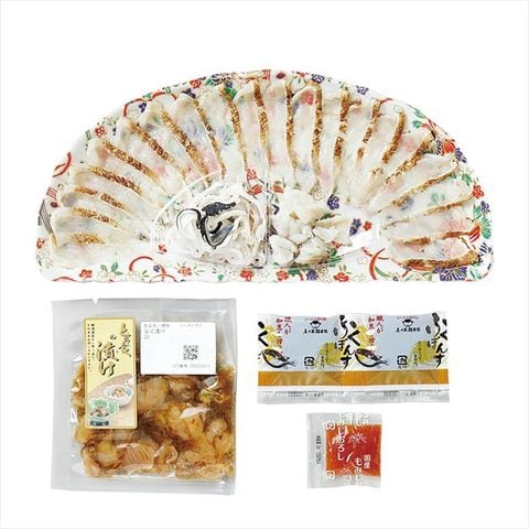 ◆商品内容:まふく炙り刺身60g、とらふく皮30g(プラスチック皿)、とらふくの漬け30g、ポン酢10g×2、モミジオロシ3g、「お父さんありがとう」のメッセージ入りしおり
