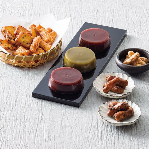 ■商品内容:かりんとう40g(黒胡麻・落花生各1袋)・羊かん60g(抹茶・練り・小倉各1個)