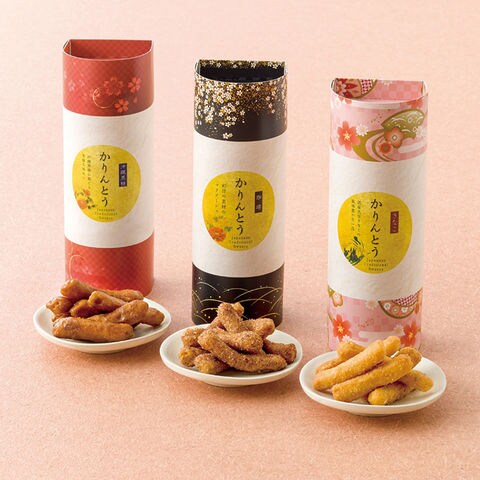 ■商品紹介:沖縄産の黒糖を使用した黒糖の風味が口に広がる、ツヤが美しい沖縄黒糖かりんとうと、国産きなこをまぶし甘さを抑え少し塩味に仕上げた懐かしい味のきなこかりんとう、珈琲の香ばしさが甘みを引き立ててくれる大人味の珈琲かりんとうの詰め合わせです。