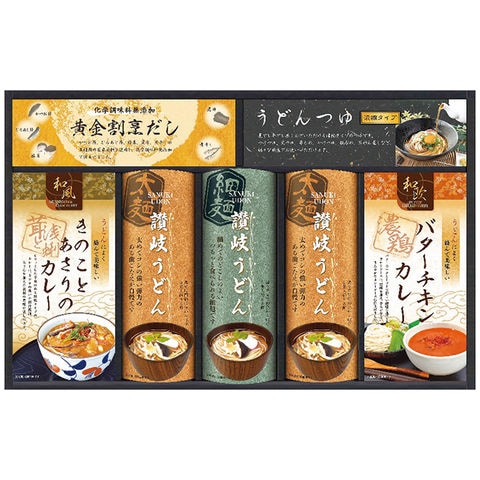 ■商品内容:讃岐うどん300g(太麺2袋・細麺1袋)・うどん用きのことあさりのカレー200g・うどん用バターチキンカレー200g各1袋・麺つゆ(濃縮タイプ)20ml×4袋・黄金割烹だしパック8g×4袋