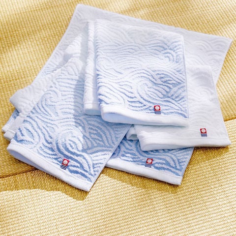 ■商品紹介:瀬戸内海に面した今治地域は、温暖な気候と水に恵まれ、古くから織物の産地として栄え、現在は日本のタオル名産地として広く知られています。瀬戸内海の青を織り上げたジャカードタオル。フェイスタオルは水面の彩りを青のグラデーションで表現しました。産地ならではの高い技術と厳しい基準をクリアし、吸水性に優れた今治タオルは、皆さまに安心・安全をお届けします。「木綿本舗今治彩波」ラベルにも、瀬戸内海をイメージした波と青のデザインをあしらい、落ち着いた仕上がりで、幅広い用途でお贈りいただけるギフトセットです。