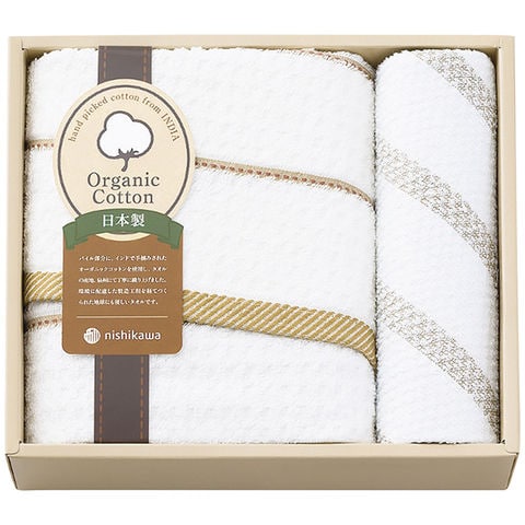 nishikawa オーガニックコットンバス・ウォッシュタオルセット 内祝い お祝 御祝 記念品 出産内祝い