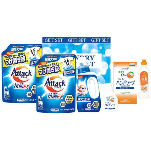 ■商品内容:750gアタック抗菌EX洗剤・200ml弱酸性ジェルハンドソープ・240g台所用洗剤除菌フレッシュオレンジ各1本・900gアタック抗菌EX洗剤(詰替用)2個・190ml弱酸性ジェルハンドソープ(詰替用)1個・[日本製]