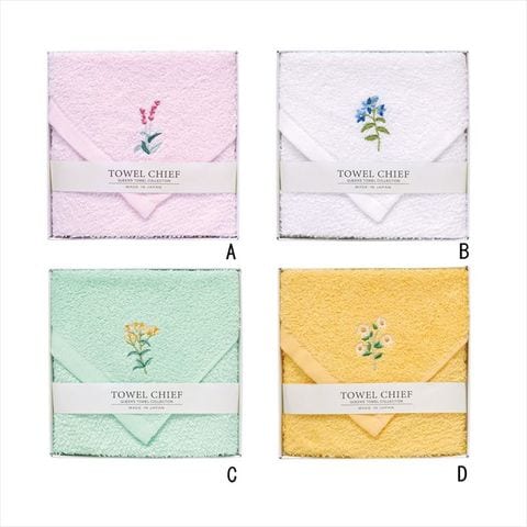 かわいい草原の花の刺しゅうをあしらったタオルハンカチギフトです。安心安全日本製で、大判サイズのタオルハンカチなので使い勝手も良くちょっとしたご挨拶ギフトとしてのほかプチギフトとしても最適です。メール便にも対応しています。