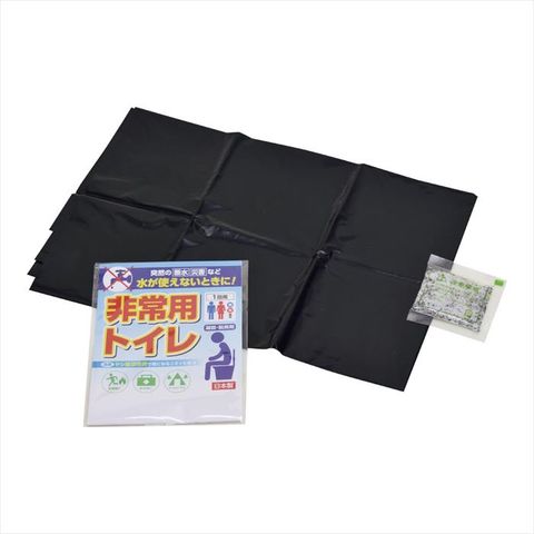 水が使えない時の簡易トイレ。高分子ポリマー(凝固剤)が水分に反応して排泄物を素早く固めます。ヤシ殻活性炭配合で消臭効果もあります。バケツなどにかぶせても使えます。