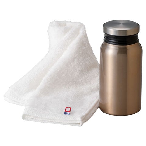■商品紹介:真空断熱のボトルと今治タオルのセット。