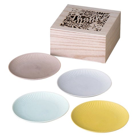 ■商品内容:プレート/径15.4×H2.2cm×4 磁器 木箱/17.5×17.5×9.5cm 原産国:日本