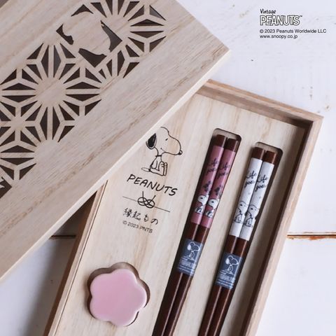 引出物,陶器,キャラクター,ピーナッツ,スヌーピー,箸,箸置き,ペア,木箱,37ドリーム
