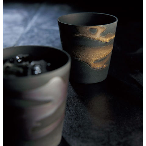 ■商品紹介:職人の手によって一つ一つ柄杓でかける金銀の釉薬。