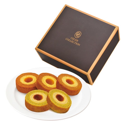 ■商品内容:2層バームクーヘン(キャラメル&ミルク)(約30g)×3 2層バームクーヘン(抹茶&ミルク)(約30g)×2 化粧箱/16×17×7.5cm 原産国:日本